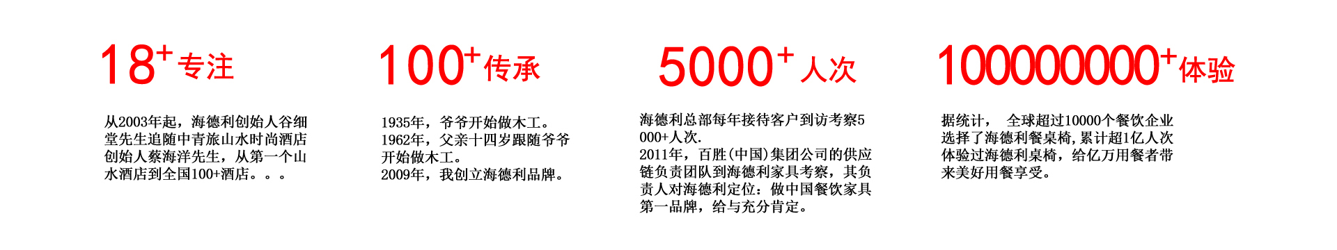從歐美發(fā)達(dá)市場(chǎng)到東南亞乃至非洲等新興市場(chǎng),超過100000個(gè)餐飲品牌及餐飲連鎖店,都在使用海德利家具,給您信心保證。